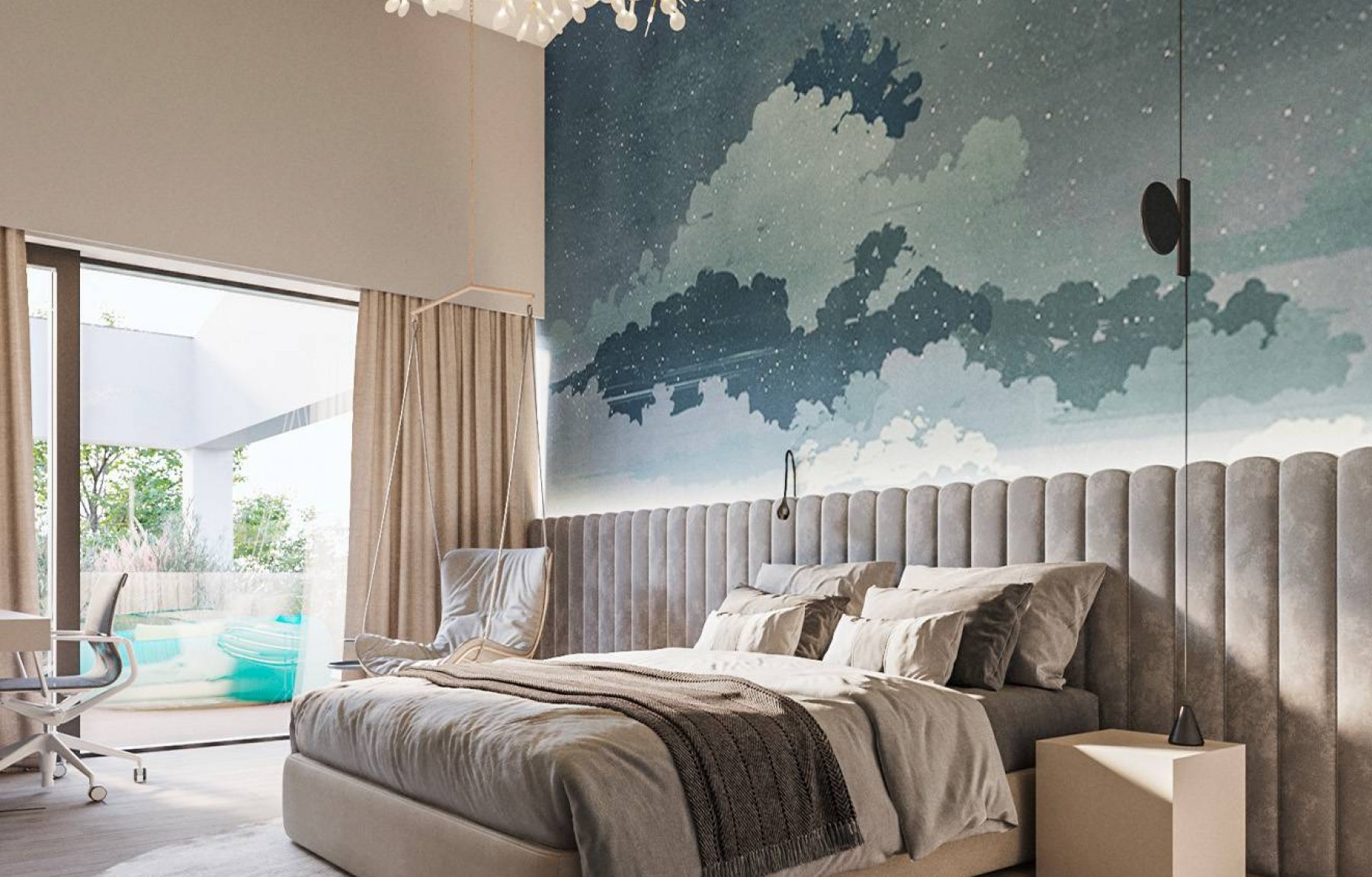 Z domu i terasy lze vstoupit do wellness zóny vily s luxusní saunou, sprchovým koutem a toaletou. Aktivního odpočinku si můžete užít v přiléhajícím venkovním bazénu, jehož vyhřívání zajišťuje vlastní tepelné čerpadlo. V přízemí domu se dále nachází pokoj s vlastní koupelnou a terasou, který může sloužit jako pokoj pro hosty nebo pracovna. Toto patro dále zahrnuje prostornou prádelnu, na kuchyni navazující spíž, samostatnou toaletu a praktickou místnost se vstupem ze zahrady, která může posloužit například pro uložení zahradního náčiní a nábytku. Pro snadnou údržbu zahrady je počítáno s umístěním zavlažovacího systému s napojením na akumulační nádrž. Naprostý komfort bydlení je zajištěn nadstandardně řešeným technickým zázemím domu, díky kterému bydlení nebylo nikdy snazší. Po celé ploše domu je plánováno podlahové vytápění. Ve všech obytných místnostech je počítáno s rekuperací vzduchu s možností individuálního nastavení. Chlazení bude umístěno ve stropech. V rámci připravenosti domu bude vybudována příprava na umístění fotovoltaiky.